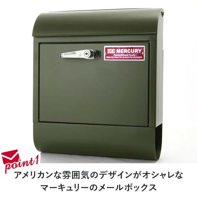 マーキュリー ポスト 通販 壁掛け おしゃれ 大型 郵便受け 郵便ポスト 鍵付き レトロ 郵便 ポスト 黒 赤 カラフル アメリカン スチールポスト Mail Box メールボックス Mercury Memabo エクステリア Mo マットオリーブ Backyard Family Jre Pointが 貯まる 使える